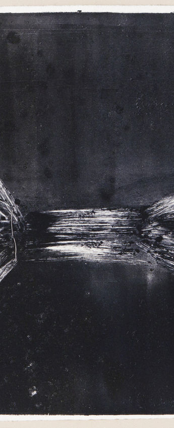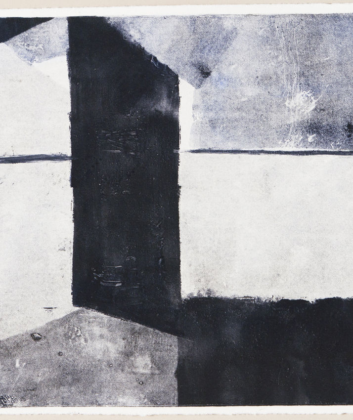 In Fragments, the artist distilled these observations into an essential graphic language. The monotype technique allowed for both immediacy and unpredictability, enabling da Mota to explore the tension between control and accident that mirrors the unstable nature of the city itself. Each impression became a variation—a reinterpretation of a remembered space—where density and emptiness, opacity and light, coexist in delicate balance. The works oscillate between figuration and abstraction, evoking architectural volumes, shadowed corners, and open skies, without ever fully describing them. What remains is an atmosphere of silence and suspension, in which the viewer’s perception completes what the image only suggests.