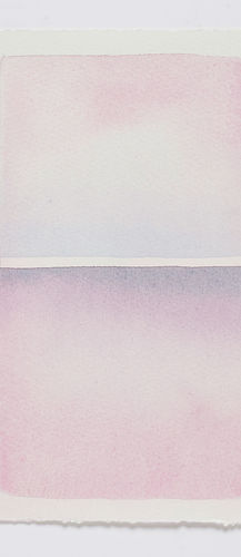 This poetic exercise takes shape through watercolor and diluted acrylic paint, investigating the edge of things — the relationships between pigment and surface, geometry and fluidity, inside and out, opacity and transparency, control and its absence. In this state where painting becomes “a world without objects, without interruption or obstacle,” as suggested by Canadian artist Agnes Martin, “one must accept the need to enter a field of vision as if crossing an empty beach to look at the ocean.”¹